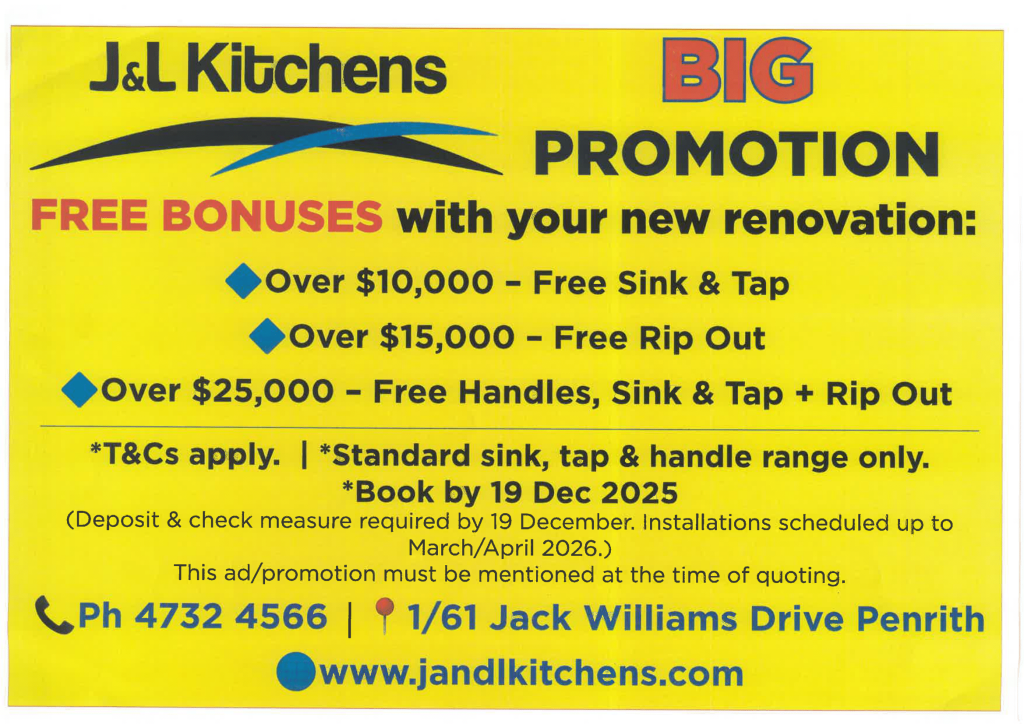 Book your renovation by 19 December 2025 and enjoy free bonuses — get a free sink and tap on projects over $10,000, a free rip-out on projects over $15,000, and free handles, sink, tap, and rip-out on projects over $25,000.
